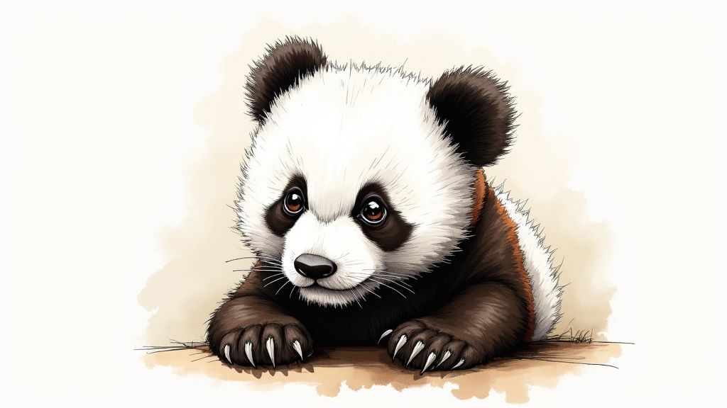 - Create a "Style-Mashup" Project: Pick two distinct styles, such as Realistic and Cartoon. Your challenge is to draw the same animal, like a red panda, by blending key elements from both. This is an excellent exercise for pushing creative boundaries.