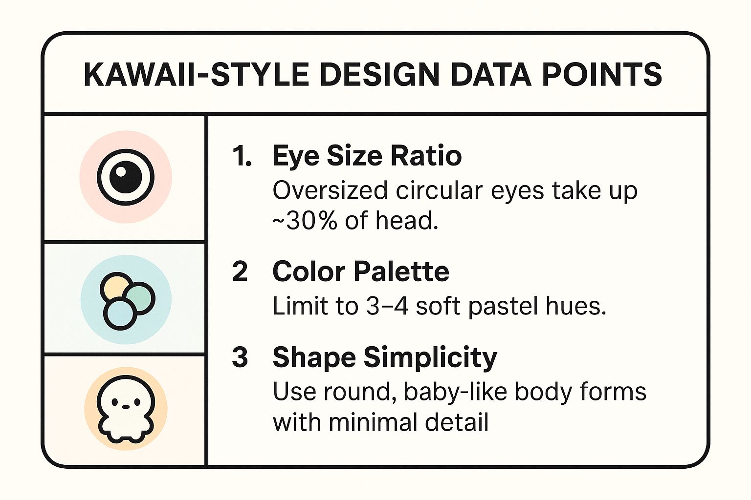 The following infographic highlights the core design principles for creating authentic Kawaii-style animals.