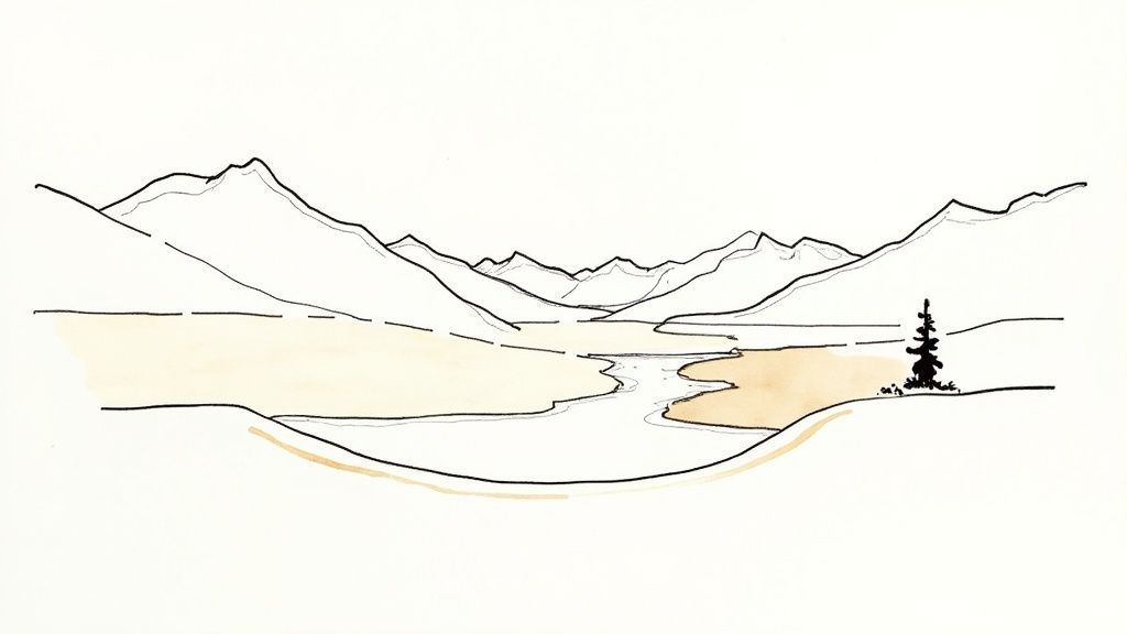 - Master Atmospheric Perspective: Create a sense of depth by making objects in the distance lighter, less detailed, and cooler in color. Objects in the foreground should have stronger contrast and sharper details. For a deeper dive, explore these fundamentals of landscape drawing for beginners on drawinglist.com.