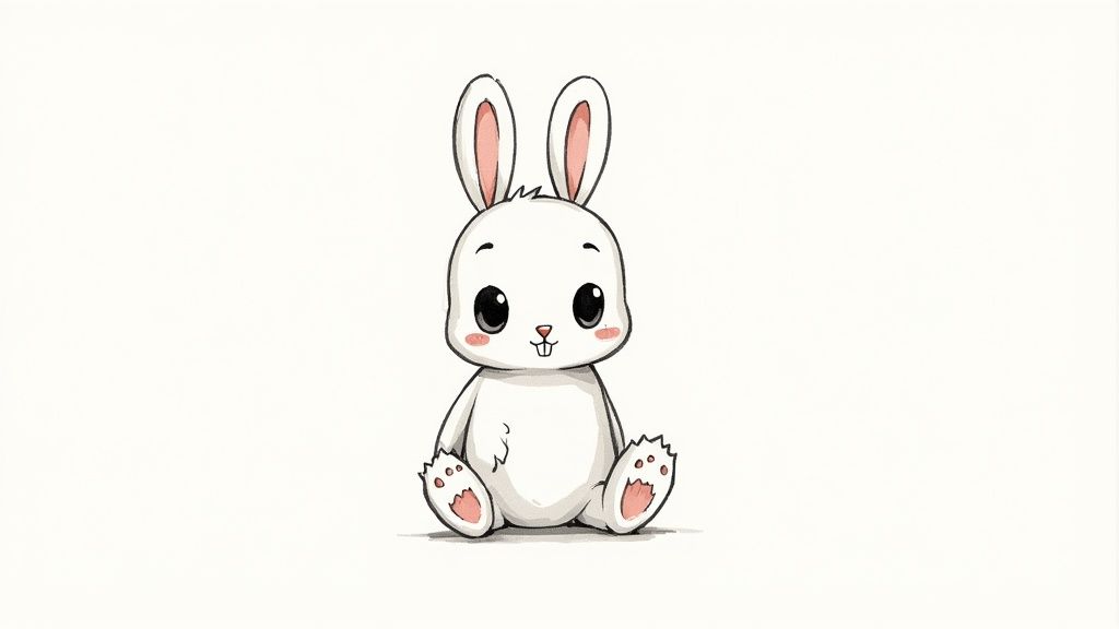 This approachable style has been perfected by legends like Walt Disney, whose characters are built from circles, and Jim Davis, who gave Garfield his iconic look through simple, bold lines. The goal isn't realism; it's expression. This makes cartoon animals a forgiving and incredibly fun subject, perfect for building confidence and exploring character design. For more inspiration, you can learn more about cartoon drawing ideas.