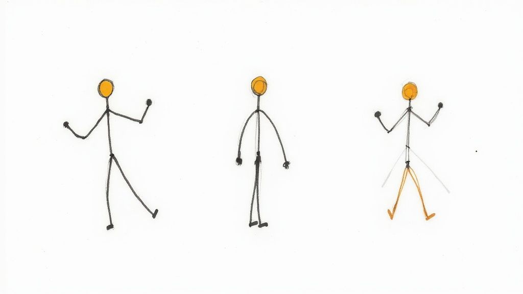 - Add Simple Joints: Place small circles where the shoulders, elbows, hips, and knees would be. This helps you visualize how the limbs bend and makes posing your figure much more intuitive.