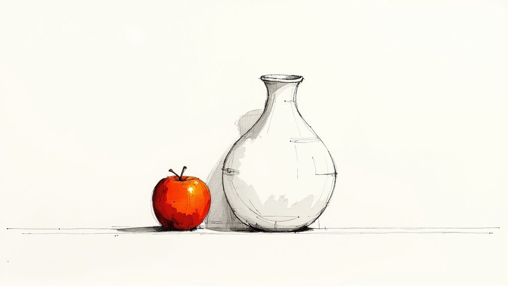 We’ve journeyed through a comprehensive collection of sketch drawing ideas, touching on everything from the subtle expressions of a portrait to the grand scale of an urban landscape. This curated list, spanning from figure drawing and animal studies to the imaginative realms of fantasy, is designed to be more than just a temporary fix for artist's block. It's a foundational resource to fuel your creative engine for months to come.