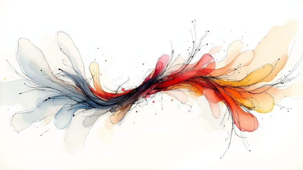 This approach is perfect for breaking free from the pressure of realism and technical perfection. It connects you directly to the intuitive side of your creativity, making it a highly personal and therapeutic exercise. By concentrating on how a feeling looks, you unlock a new visual language pioneered by artists like Wassily Kandinsky and Jackson Pollock, who used abstraction to express their inner worlds.