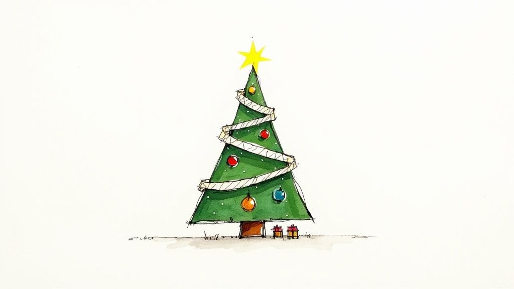 The true artistry lies in the details. You can see this approach in classic Hallmark Christmas cards and Norman Rockwell's heartwarming illustrations, where the tree feels like a living centerpiece of a festive scene. By focusing on how each element interacts, you can elevate a basic sketch into a rich and captivating illustration.