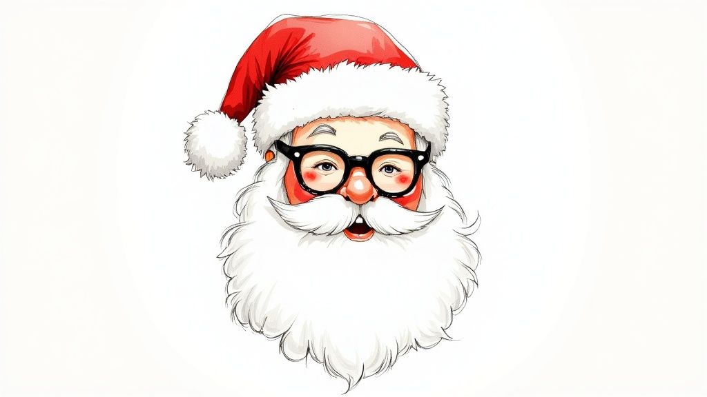 To move beyond a simple caricature, concentrate on the details that give Santa his unique and friendly appearance. Start with a basic head shape and build layers of personality through texture and expression.